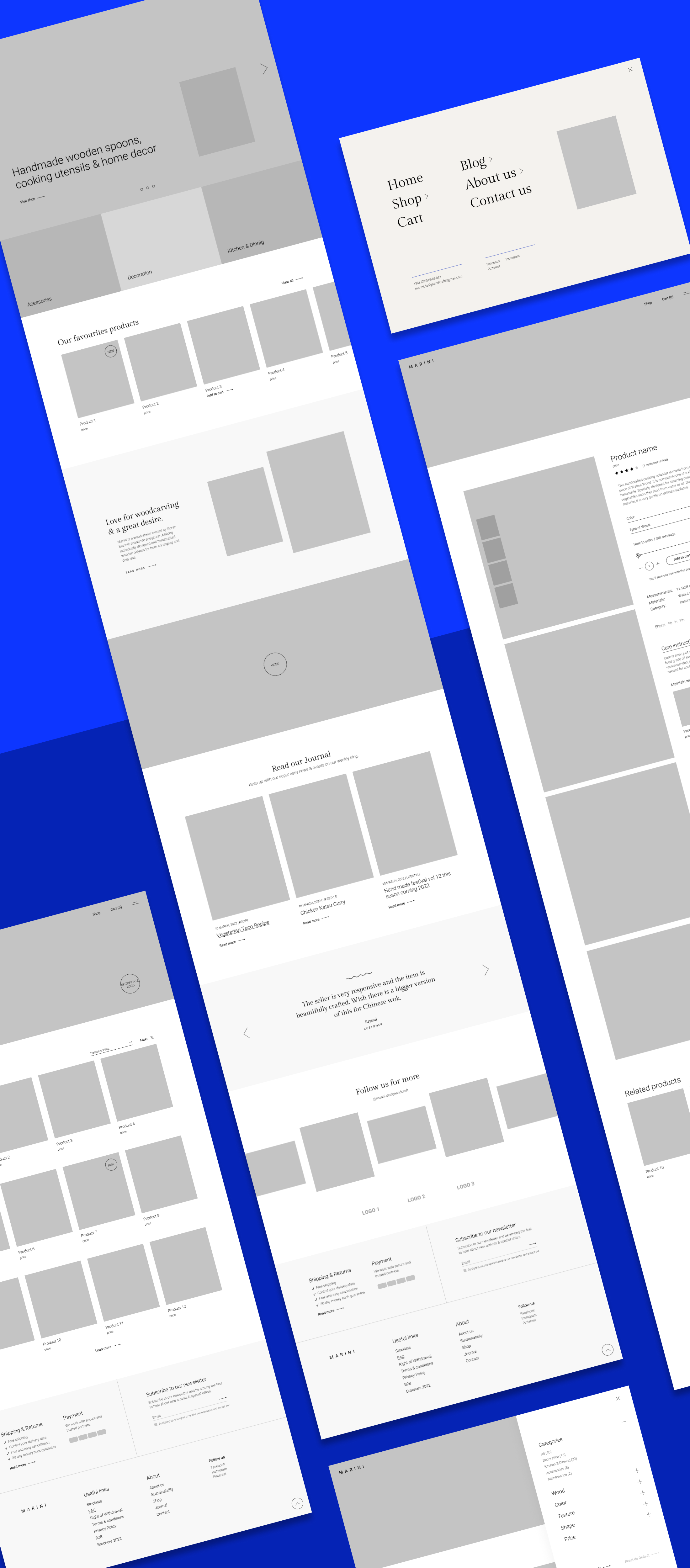 Everyone on the team created countless versions of wireframes, we decided to take parts from several drawings and make one unified that we thought give the best UX and properly described Marini as a brand.